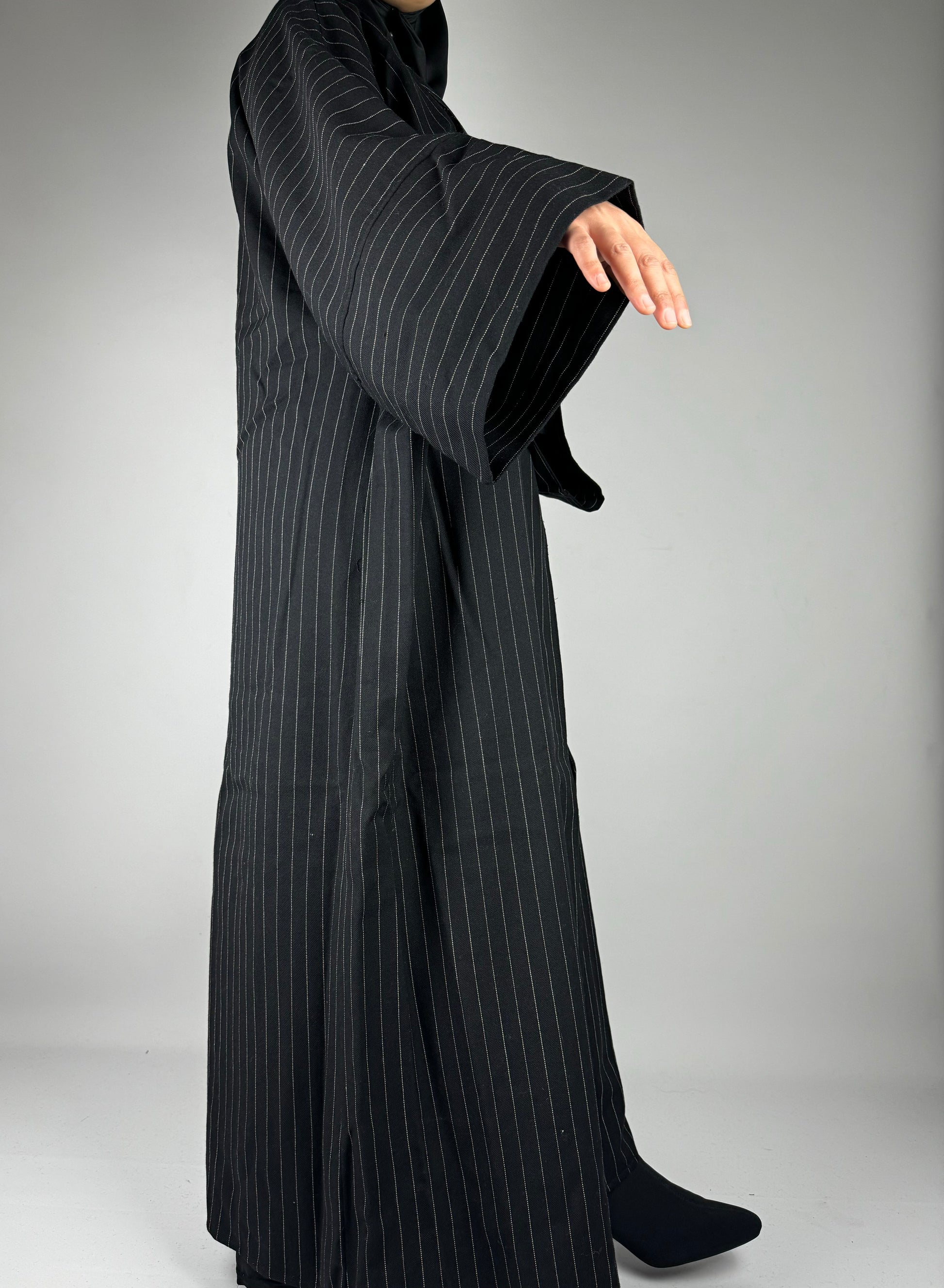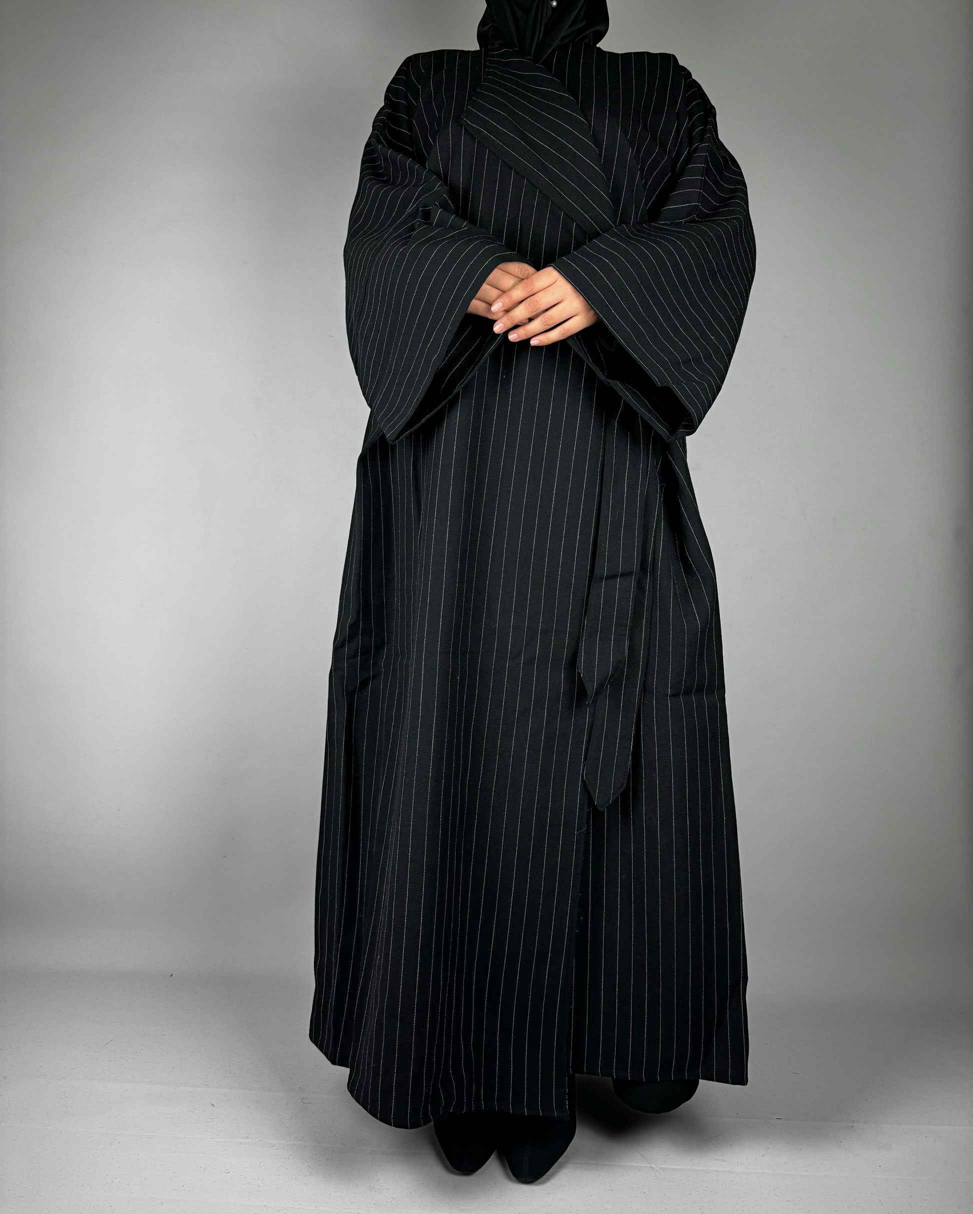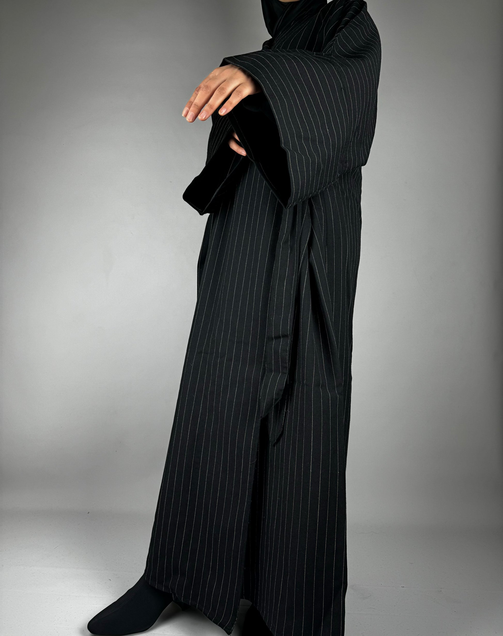 L'abaya Akila en tissu tergale allie confort et sophistication. Son design à rayures fines, inspiré des costumes classiques, lui donne une allure élégante et moderne. La fermeture nouée permet un ajustement parfait tout en apportant une touche féminine. Idéale pour les occasions professionnelles ou élégantes, cette abaya est à la fois chic, légère et facile à entretenir.